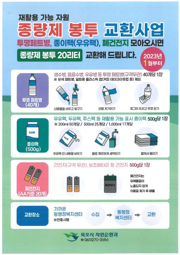 [전남=프레스뉴스] 이광남 기자= 전남 목포시가 재활용이 가능한 자원을 재사용 종량제봉투로 교환하는 사업을 연중 추진한다.