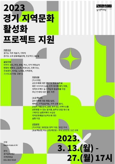 | ▲ 2023 경기 지역문화 활성화 프로젝트 지원 안내 포스터(사진=경기문화재단) |