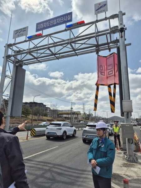 | ▲허남석 부시장이 지난 3월 31일 서해로 지하차도(건건동 411-3) 진입차단시설을 점검하고 있다.(사진=안산시) |
