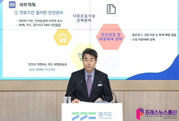 [프레스뉴스] 장현준 기자= 경기도가 안전하고 편안한 명절을 위해 ‘설 맞이 종합대책’을 추진한다. 이번 종합대책은 10.29참사와 같은 비극이 다시는 일어나지 않도록 다수 인파가 몰리는 명절 기간 중 사회안전망 강화 등에 초점을 맞추고 있다.