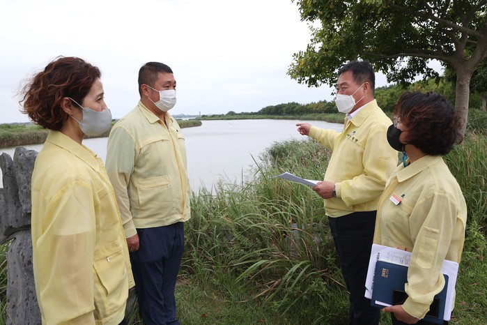 | ▲ 김산 무안군수 창포호 현장방문(무안군 제공) |