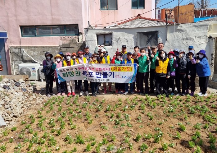 ▲죽교동은 지난 16일 자생단체회원, 재정지원일자리 참여자, 직원 등 50여명이 참석한 가운데 새봄맞이 봄꽃을 식재했다.(사진제공=목포시) |