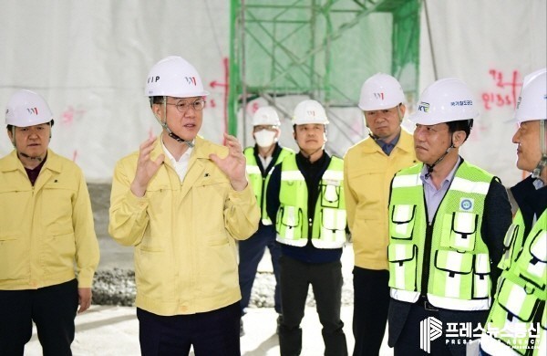[프레스뉴스] 장현준 기자= 안산시(시장 이민근)는 이민근 안산시장이 4일 오전 성포동 성어공원 인근의 신안산선 복선전철 공사현장을 방문해 현장 안전관리체계를 점검하고 근로자들을 격려했다고 밝혔다.