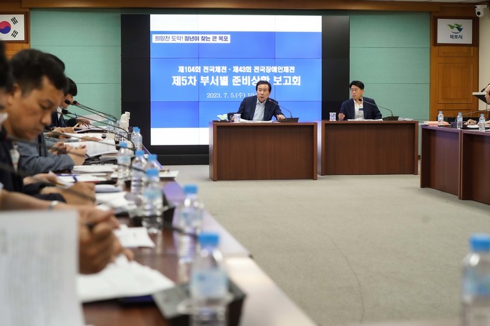 ▲목포시가 제104회 전국체육대회 D-100일인 5일 양대체전 성공개최를 위한 부서별 진행상황을 점검했다. (사진제공=목포시) |