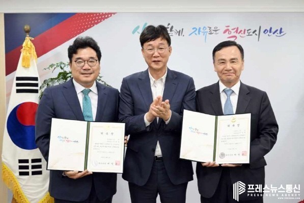 | ▲ 안산시, 고문변호사 2명 신규 위촉(왼쪽부터 안성용 변호사, 이민근 안산시장, 임정혁 변호사)사진=안산시 |