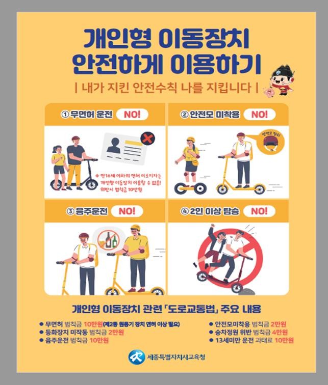 ▲ 개인형 이동장치 안전수칙 홍보물(사진=세종시교육청) |