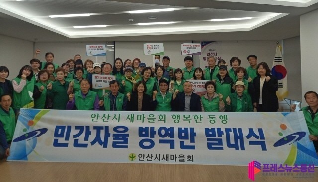 | ▲지난 27일 단원보건소에서 진행된 '민간 자율방역반 발대식'에서 기념촬영을 하고 있다.(사진=안산시) |