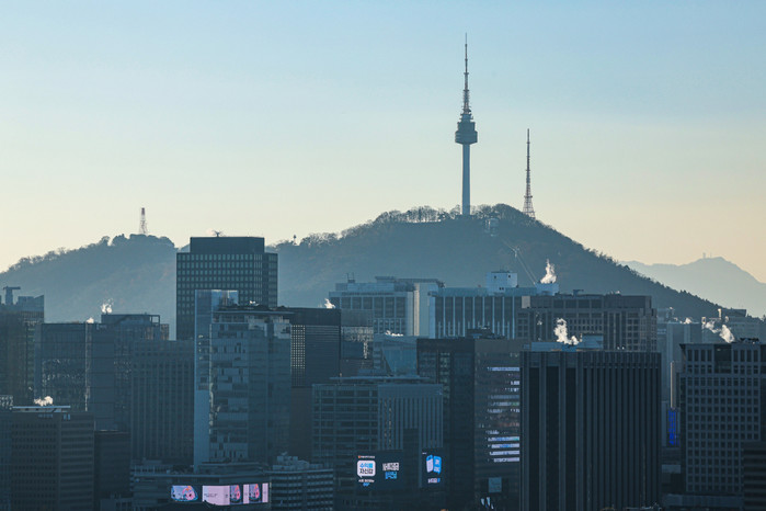 | ▲영하권 추운 날씨를 보인 18일 서울 도심의 빌딩에 난방을 가동하며 발생한 수증기가 피어오르고 있다./사진=뉴스1 |