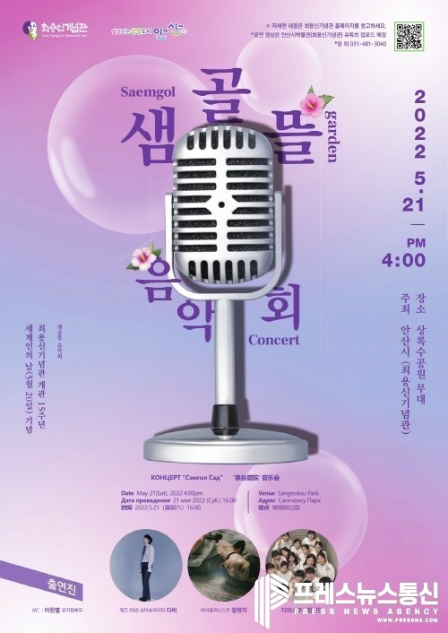 [프레스뉴스] 장현준 기자= 안산시는 최용신기념관 개관 15주년을 기념해 최용신(1909~1935) 선생의 뜻과 사랑을 담은 ‘샘골뜰음악회’를 오는 21일 오후 4시 상록수공원에서 개최한다고 19일 밝혔다.