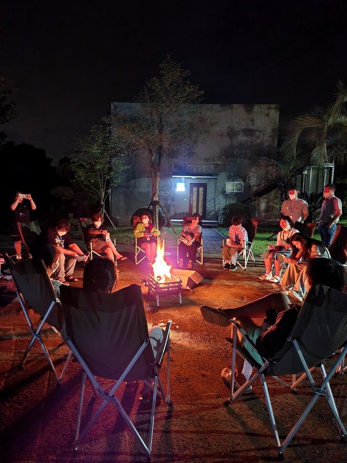 ▲ ‘선생님과 함께하는 마음치유 여행’에 참여한 세종시학생들이 불멍을 즐기고 있다(사진=세종시교육청) |