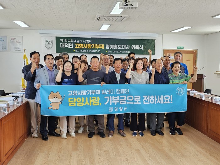 [전남=프레스뉴스] 박정철 기자=담양군 대덕면은 제1회 고향사랑의 날(9.4)을 맞이하여 지난 25일 대덕면 이장단 24명과 새마을부녀회원 23명을 대덕면 고향사랑기부제 명예 홍보대사로 위촉하고, 기부 절차와 효과를 설명했다.