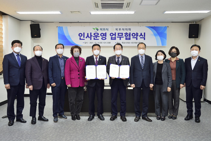 업무협약의 주요내용은 ▴인사 교류 활성화 제고를 위한 정기‧수시 인사교류 운영, ▴교육훈련계획 및 교육프로그램 운영 등에 관한 양 기관 간협의 및 통합 운영, ▴목포시의회 소속 공무원 및 시의원의 후생복지에 관한 사항은 양 기관이 협의 및 통합 운영 등 이다.