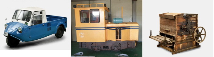 | 기아 경3륜 트럭 T600(5호) ,동주염전 소금운반용 궤도차(10호), 목제솜틀기(11호)사진=안산시 |