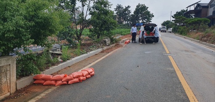 | ▲영광군은 도로변 모래 주머니를 설치작업을 마무리 했다.(사진제공=영광군) |