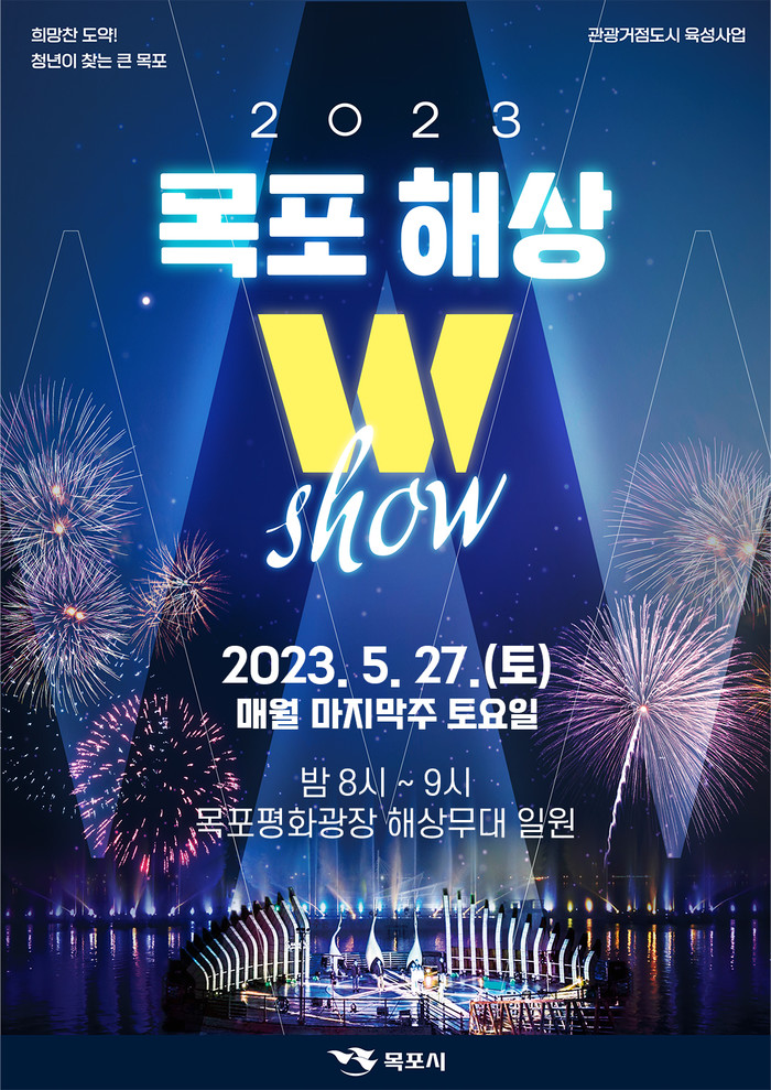 한편, 목포해상W쇼는 오는 11월까지 매월 마지막 주 토요일 밤 8시부터 9시까지 정기공연이 펼쳐지며, 여름 휴가철 특별공연(8.5.), 제104회 전국체육대회 기념(10.14.), 제43회 전국장애인체육대회 기념(11.4.) 특별 공연을 3회 추가 편성해 다채로운 볼거리를 제공할 계획이다.