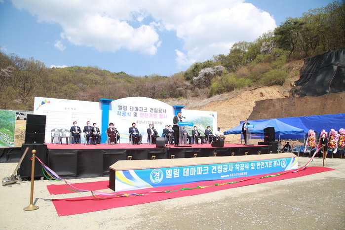 ▲ 지난 15일 엘림테마파크 건립을 위한 착공식 및 안전기원행사에서 (주)엘림개발 안태용 회장이 인사말을 하고 있다. |