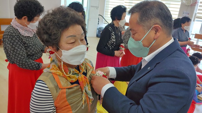 | ▲ 영광군 노인복지회관 어버이날 행사(카네이션 달아주기)/영광군 제공 |