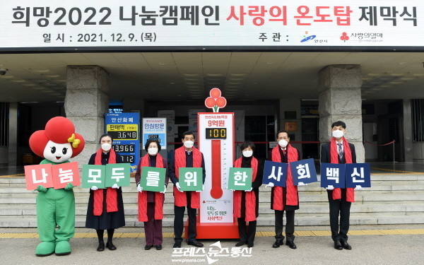 [프레스뉴스] 장현준 기자= 안산시(시장 윤화섭)는 9일 시청 앞에 사랑의 온도탑을 설치하고, 내년 1월31일까지 불우이웃돕기 연말 집중모금 캠페인에 나선다.