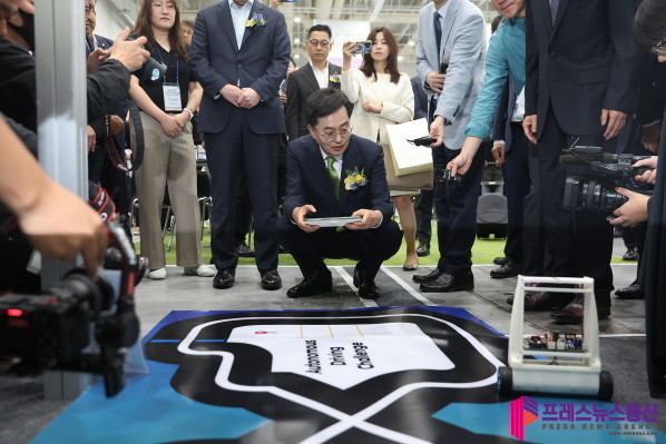 | ▲8일 오전 수원컨벤션센터에서 열린 경기도 KB굿잡 페스티벌 개막식에서 김동연 경기도지사가 박람회장 라운딩 및 체험을 하고 있다.(사진=경기도) |