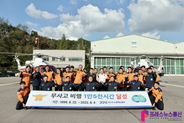 경기도 소방재난본부는 경기도 특수대응단 119항공대 소방헬기가 1999년 8월 22일 이후 지난 8월 4일까지 23년간 1만5천 시간 무사고 비행시간 기록을 달성했다고 9일 밝혔다.