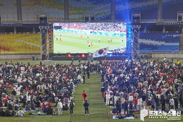 | ▲ 지난 24일 수원시 팔달구 수원월드컵경기장에서 도민들이 월드컵 응원을 하고 있다.(사진=경기도) |