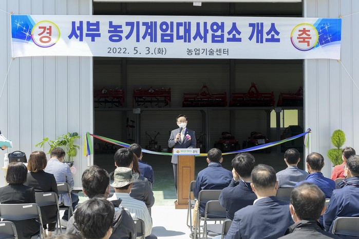 시는 농업인의 농기계 구입 부담을 줄이고 농작업 기계화를 통한 영농철 일손 부족해소와 적기 영농을 위해 북부(승주읍)·남부(덕월동)에 농기계 임대사업소를 운영하고 있었으며, 이날 서부(외서면) 임대사업소의 문을 열어 총 3곳으로 확대운영하게 됐다.