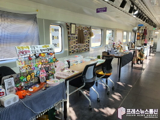 Station-A는 지난해 지하철 4호선 고잔역 철도유휴부지에 디젤전동차 무궁화호 3량을 개조해 꾸며진 철교 위 문화예술 공간으로, 토탈공예, 레진아트, 규방공예(한복) 등 4개 창업 공방이 입주해 운영 중이다.