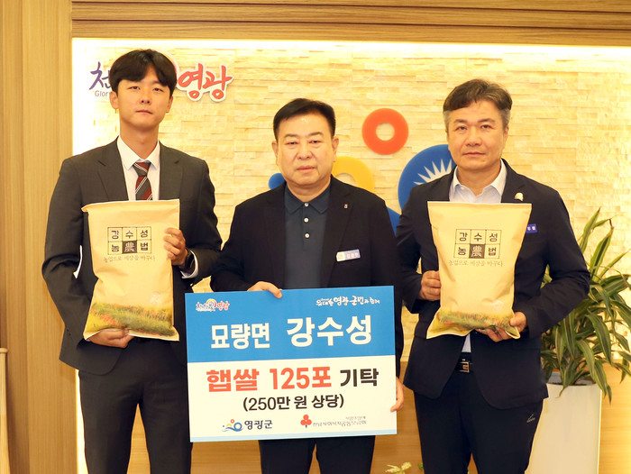 강종만 군수는 “어려운 이웃에게 관심을 갖고 기탁해 준 강수성님께 감사드리며, 앞으로도 우리 지역 젊은 농업인들에게 든든한 길잡이가 되어 건강한 영광군을 만드는데 지속적으로 노력해 주길 바란다.”고 전했다.