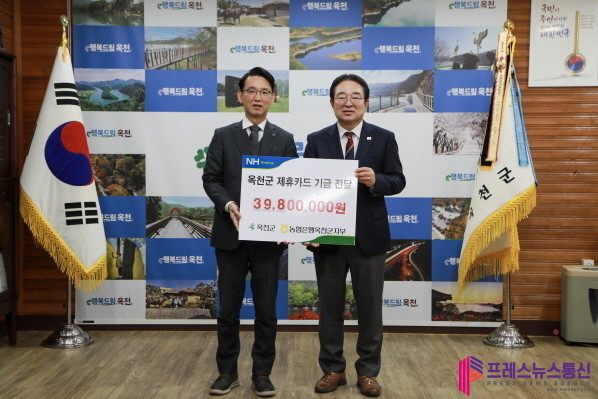[프레스뉴스] 류현주 기자= 옥천군은 27일 NH농협은행 옥천군지부(지부장 현석환)로부터 제휴카드 적립을 통해 발생한 기금 3,980만원을 전달받았다.