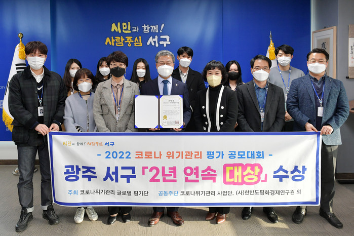 [광주=프레스뉴스] 강래성 기자= 광주 서구(구청장 서대석)가 지난 4일 코로나19 위기관리 글로벌평가단이 주관한 ‘2022 코로나 위기관리대상 공모대회’에서 지방자치단체 부문 대상을 2년 연속 대상을 수상했다고 밝혔다.