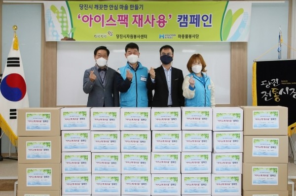 당진시 자원봉사센터에서 시작한 ‘깨끗한 안심 마을 만들기’에도 동참했다. 버려지는 아이스팩을 수거하고 세척해 당진전통시장에 전달했다. 상품의 신선도가 중요한 어시장을 시작으로 필요한 상인에게 전달됐다.