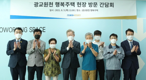 이재명 지사는 5일 수원시 영통구에 위치한 광교원천 경기행복주택을 방문해 에어컨 설치 현장을 둘러보고, 입주민들과 간담회를 가졌다.