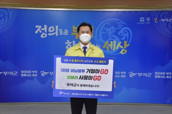 또한 “부여군은 아이스팩 자원순환 캠페인, 투명 페트병 분리배출 등을 민관 협력으로 추진하고 있다”며 “주민 여러분의 적극적인 참여를 부탁드리고 앞으로 공공기관부터 선도적으로 1회용품 줄이기 실천을 통해 탈(脫)플라스틱 사회전환과 지속가능한 자원순환 사회조성에 앞장서겠다”고 밝혔다.