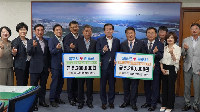 이날 기탁식에서 목포농협 임직원 52명은 진도군에, 서진도농협 임직원 52명은 목포시에 각각 기부했다.