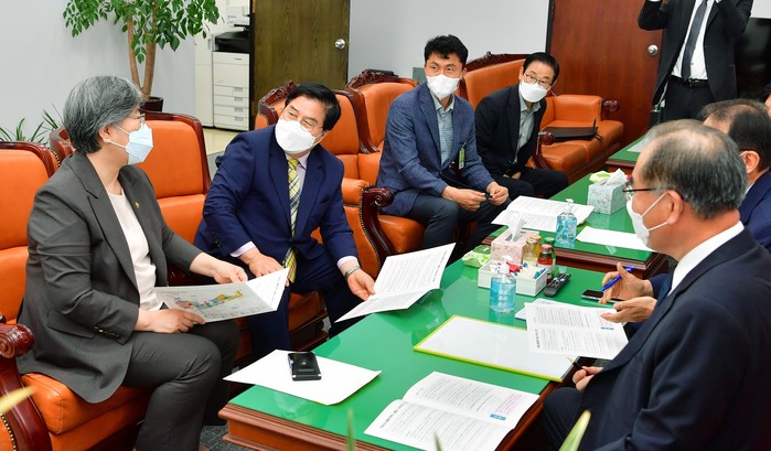 [전남=프레스뉴스] 박정철 기자= 유두석 장성군수가 국립심뇌혈관센터 설립을 앞당기기 위해 팔을 걷었다. 유두석 군수는 16일 국회상임위원장실에서 지역구 이개호 국회의원(농해수위원장), 정은경 질병관리청장과 면담을 갖고, 광주연구개발특구 내 국립심뇌혈관센터 조기 설립을 건의했다.
