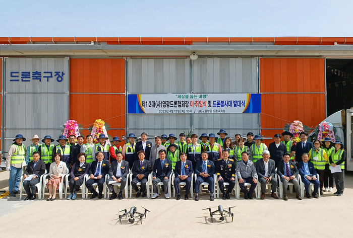 | ▲사단법인 영광드론협회 회장 이취임식 및 드론봉사단 발대식 개최(사진제공=영광군) |