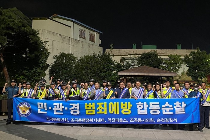 이날 합동 순찰에는 조곡동 청년회원 25명, 순천경찰서와 역전파출소 직원 15명, 순천역전파출소 자율 방범대원 10명, 조곡동 행정복지센터 직원과 주민 20여 명이 함께 참여하여 취약지 골목길 및 봉화산 둘레길 입구에서 야간순찰 활동을 실시했으며, 방범 진단을 통해 보다 더 안전하고 효율적인 방범활동을 모색하는 자리가 됐다.