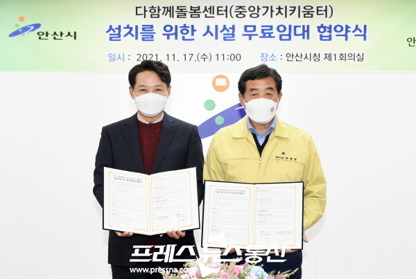 | ▲ 안산시, 다함께 돌봄센터 설치를 위한 시설 무료임대 협약식(사진=안산시) |