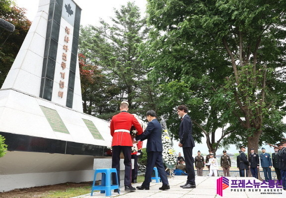 [프레스뉴스] 장현준 기자= 김동연 경기도지사가 18일 쥐스탱 트뤼도(Justin Pierre James Trudeau) 캐나다 총리를 만나 6.25 가평전투에 참전했던 캐나다군을 추모했다.