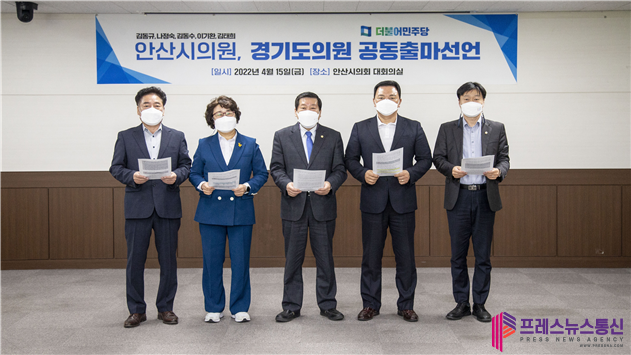 [프레스뉴스] 강보선 기자= 안산시의회 민주당 시의원 5인(김동규, 나정숙, 김동수, 이기환, 김태희)은 지난 15일 안산시의회 대회의실에서 <경기도의원 공동 출마선언>을 하였다.