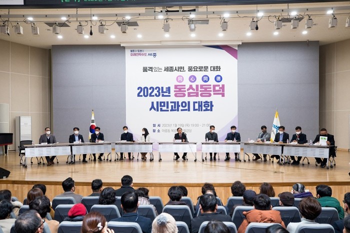 시는 지난 19일 아름동 복합커뮤니티센터에서 ‘2023년 동심동덕 2차 시민과의 대화’를 열고 아름·한솔·도담·종촌·고운·새롬·다정·해밀동 시민들과 대화를 나눴다.