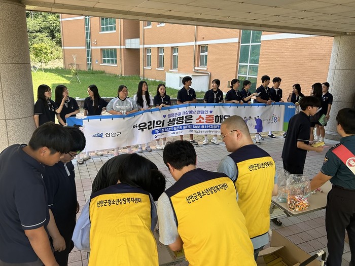 [전남=프레스뉴스] 강래성 기자= 신안군(박우량 군수)은 지난 24일에 1388청소년지원단, 신안경찰서, 신안교육지원청, 신안군보건소와 함께 도초고등학교, 비금중학교를 찾아가 청소년들을 대상으로 생명존중 자살예방 캠페인 및 홍보 활동을 실시했다고 밝혔다.