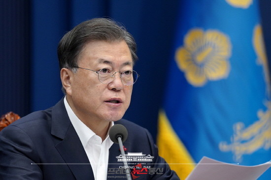 | ▲문 대통령이 21일 청와대 여민관에서 열린 영상국무회의에서 발언하고 있다. (사진=청와대) |