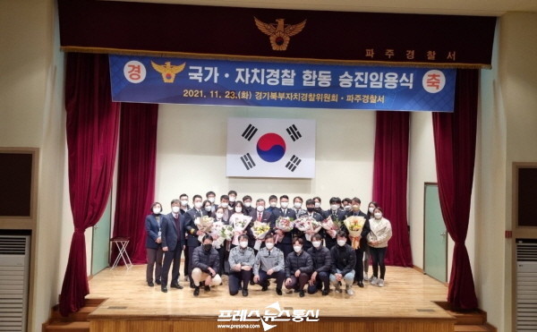 [프레스뉴스] 김대일 기자= 경기도북부자치경찰위원회(위원장 신현기)는 23일 파주경찰서(경찰서장 총경 정문석)와 함께 ‘경기북부 경찰공무원 합동 승진임용식’을 개최했다.