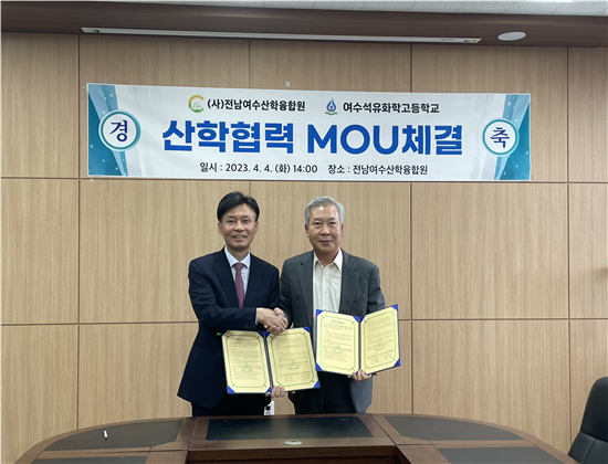 [전남=프레스뉴스] 강래성 기자= 여수석유화학고등학교(교장 이상용)은 오늘(4일) 사단법인 전남여수산학융합원(원장 정 강)과 스마트 석유화학 분야 인재 양성을 위한 산학협력 양해각서(MOU)를 체결했다고 밝혔다.