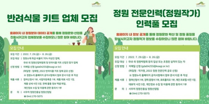모집대상은 반려식물 키트 업체 정보와 정원 설계 및 조성 분야 전문가· 정원작가 등이다.