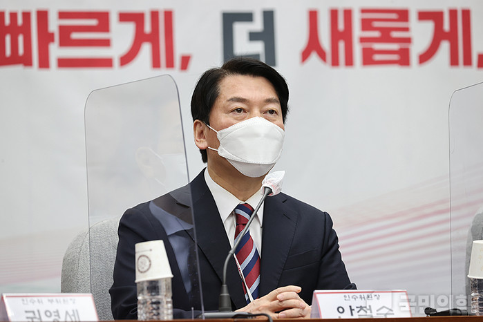 ▲28일 오전 서울 여의도 국회 회의실에서 안철수 인수위원장이 국민의힘 지도부와 당정협의를 하고 있다.(사진=국민의힘) |