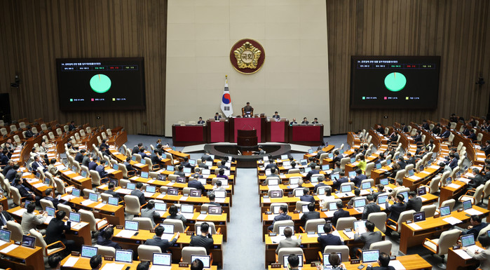 | ▲ 31일 서울 여의도 국회에서 열린 제433회국회(임시회) 제3차 본회의에 공휴일에 관한 법률 일부개정법률안(대안)이 통과되고 있다./사진-뉴스1 |