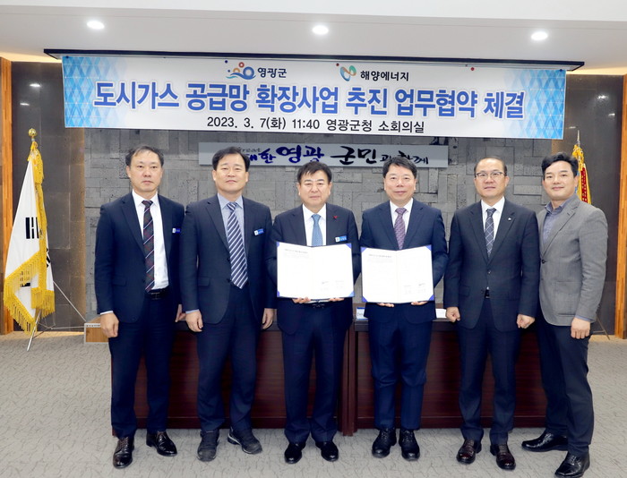 [전남=프레스뉴스] 차윤기 기자= 전남 영광군(군수 강종만)은 지난 7일 영광군청 소회의실에서 ㈜해양에너지(대표이사 정회)와 영광군 도시가스 공급망 확장사업 추진을 위한 업무 협약을 체결했다.