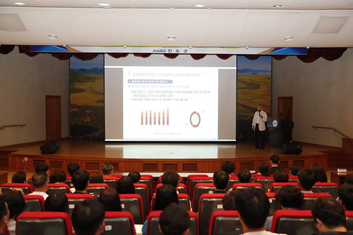 ▲진도군이 군 산하 전 직원을 대상으로 공모사업의 효율적 대응을 위한 직원 역량강화 교육을 실시했다. (사진제공=진도군) |